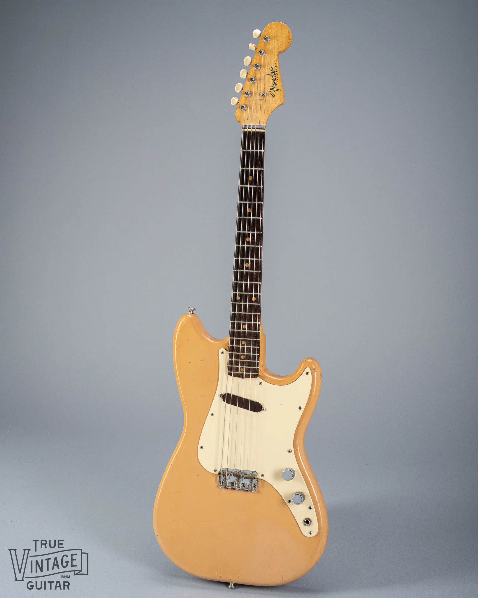 This short scale length 1960 Fender Musicmaster in Desert Sand comes to us all the way from Minnesota. The Musicmaster was the Duo-Sonics single pickup counterpart and features a short 22.5", 3/4 scale length.